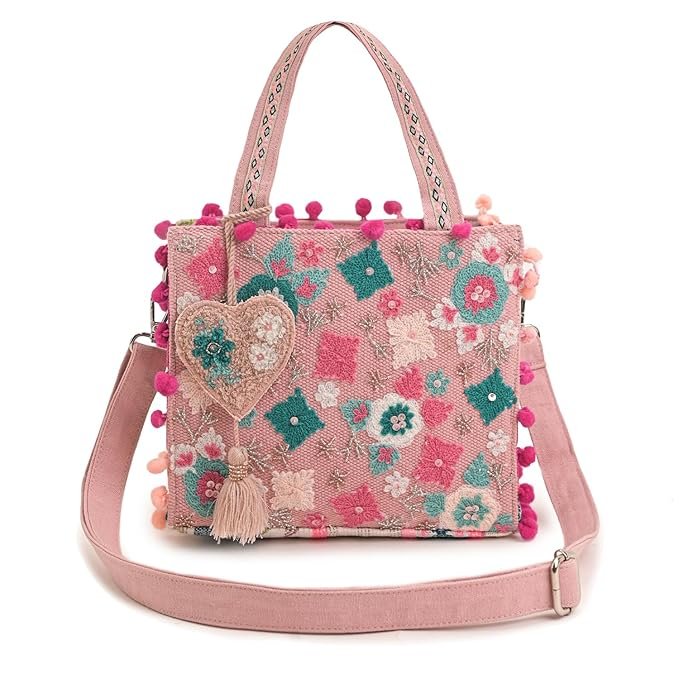 - đ VERSATILE CARRYING OPTIONS â Features dual top handles with embroidered ribbon detailing, plus an adjustable, removable crossbody strap for hands-free ease. Style it your way for casual outings or everyday errands.