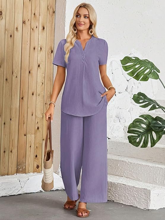 - Pants Style: Wide-leg, flowy trousers for a comfortable and stylish look.
